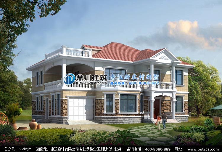 E0203二層帶車庫露臺別墅圖紙設計效果圖,鼎川建筑二層別墅設計