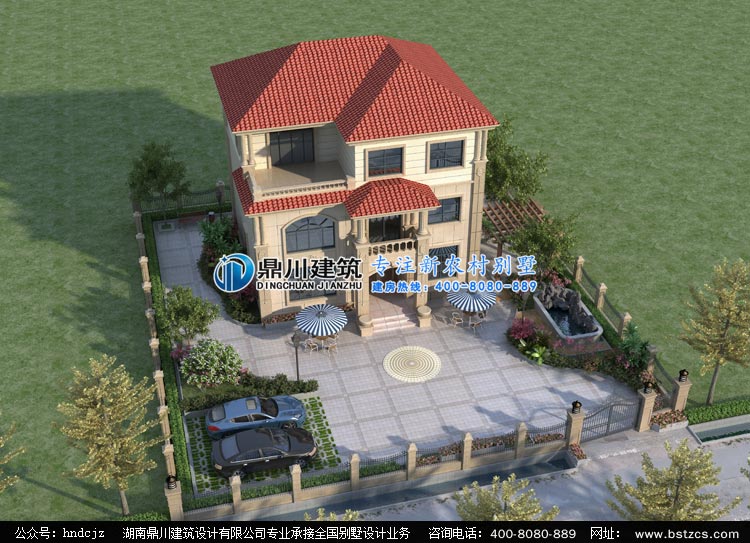 L0222三層帶院子別墅設計圖外觀效果圖,鼎川三層別墅設計花園設計