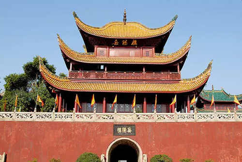 湖南岳陽市著名古建筑,它屹立在洞庭湖畔,是我國古建筑中的瑰寶,自古有“洞庭天下水,岳陽天下樓”之譽。前身是三國時(215年),吳國魯肅練水兵士構筑的閱兵臺。唐開元四年(716年)中書令謫守岳州,在此修樓,正式定名為“岳陽樓”。宋慶歷五年(1045年),滕子京守巴陵郡時重修,并請范仲淹撰《岳陽樓記》,于是名聲更大,成為我國南方一大名勝?,F存建筑為清同治六年(1867年)再建,保持宋代建筑的藝術風格。