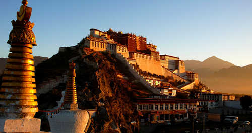 舉世聞名的布達拉宮,聳立在西藏拉薩市紅山之上,海拔3700多米,占地總面積36萬余平方米,建筑總面積13萬余平方米,主樓高117米,共13層,其中宮殿、靈塔殿、佛殿、經堂、僧舍、庭院等一應俱全,是當今世上海拔最高、規模最大的宮堡式建筑群。“布達拉”系舟島,是梵文音譯,又譯作“普陀羅”或“普陀”,原指觀世音菩薩所居之島。拉薩布達拉宮俗稱第二普陀羅山。