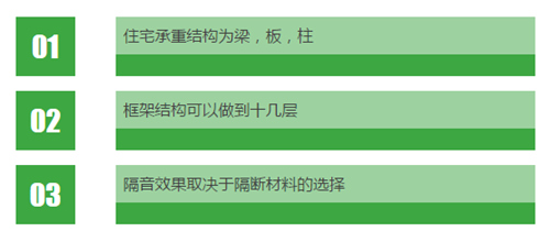 隔音特點:框架結構的隔音效果取決于隔斷材料的選擇,比如最常用的加氣混凝土砌塊,內部是由許多細孔組成,隔音保溫效果是所有建筑材料中最好的。現在已廣泛用作賓館客房、KTV包房的隔音墻體(輕質隔音墻體,輕質隔墻,輕質磚隔墻)。顯然,加氣砼砌塊比實心紅磚隔音好得多。事實也證明了這一點。