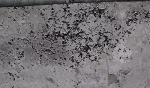 還有就是混凝土振搗不密實,大量的蜂窩麻面導致空氣與鋼筋接觸造成銹蝕,鋼筋的銹蝕又加速了混凝土的破環,形成一個惡性循環!