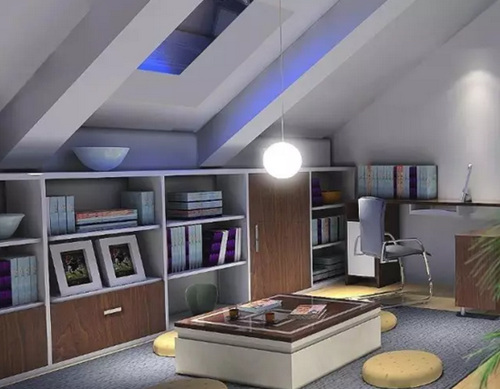 4、書房或工作室。視野相對其他地方寬闊明亮,且離客廳較遠,利用了閣樓的坦然優勢,安靜而不被打擾,能安心的工作或學習。