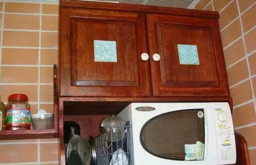 5、微波爐可以直接放在臺(tái)面上,也可以放在吊柜之中。如果是放在臺(tái)面上,可以直接使用操作臺(tái)上方的插座;如果是放在吊柜中,就要在微波爐后方設(shè)置一個(gè)專用插座,一般距地1600㎜左右。
