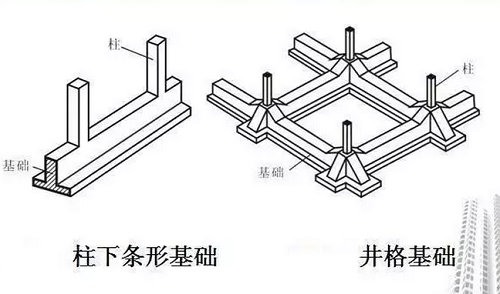 井格基礎一般適用土質較軟。有的地基用條形基礎不夠,用筏板基礎又浪費,所以往往采用十字的井格基礎。
