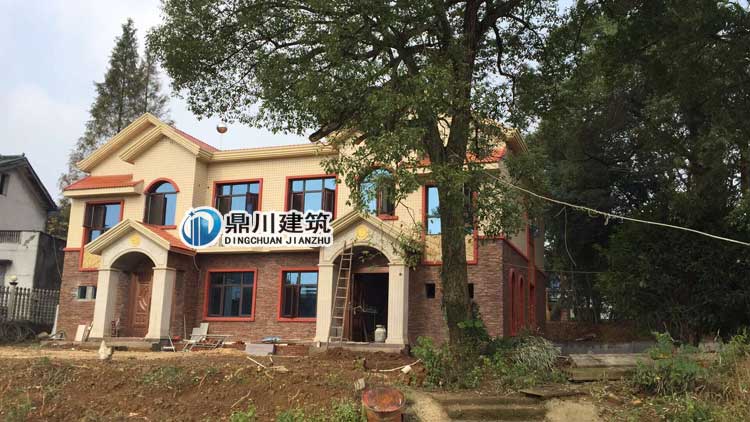 這是小別墅建成后的實拍圖,房子建成花了80萬,與效果圖不同,戶主將本來是涂料的墻體改成了瓷磚。獨具特色的造型讓房子在農(nóng)村成為一道特色的風(fēng)景,朱紅色的文化石和紅色的屋頂、窗套恰到好處,與黃色的外墻磚很好的融合在一起。亮麗顯眼!