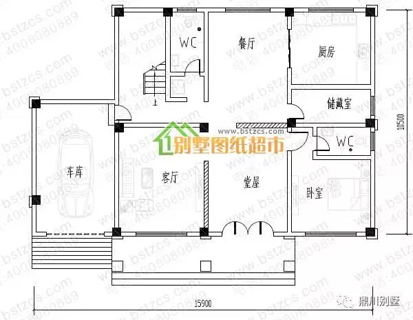 一 層:堂屋、客廳、臥室(附衛(wèi)生間)、廚房、餐廳、儲(chǔ)藏室、衛(wèi)生間、車庫(kù)