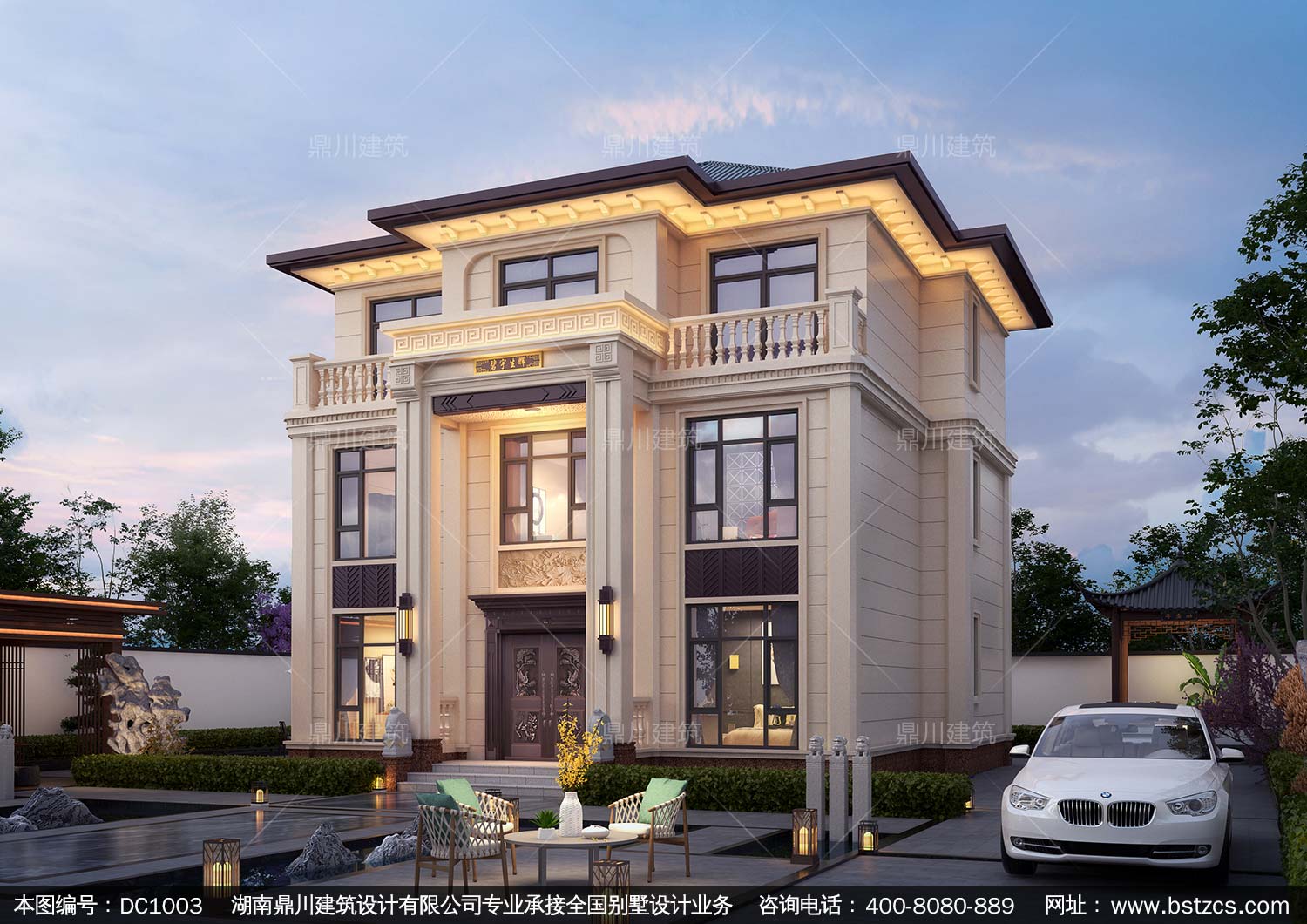 大氣三層新中式別墅設計圖紙及效果圖_農村自建別墅設計,鼎川建