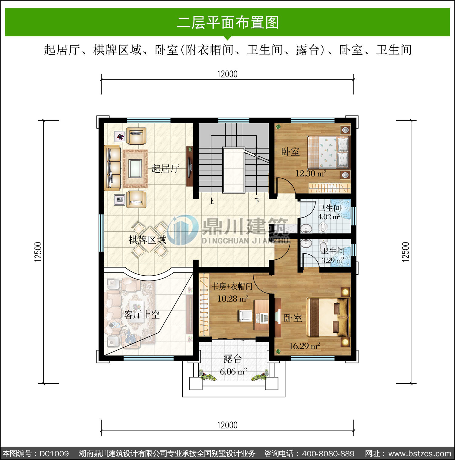 新中式三層實用別墅施工圖紙及效果圖_農村自建別墅設計,鼎川建