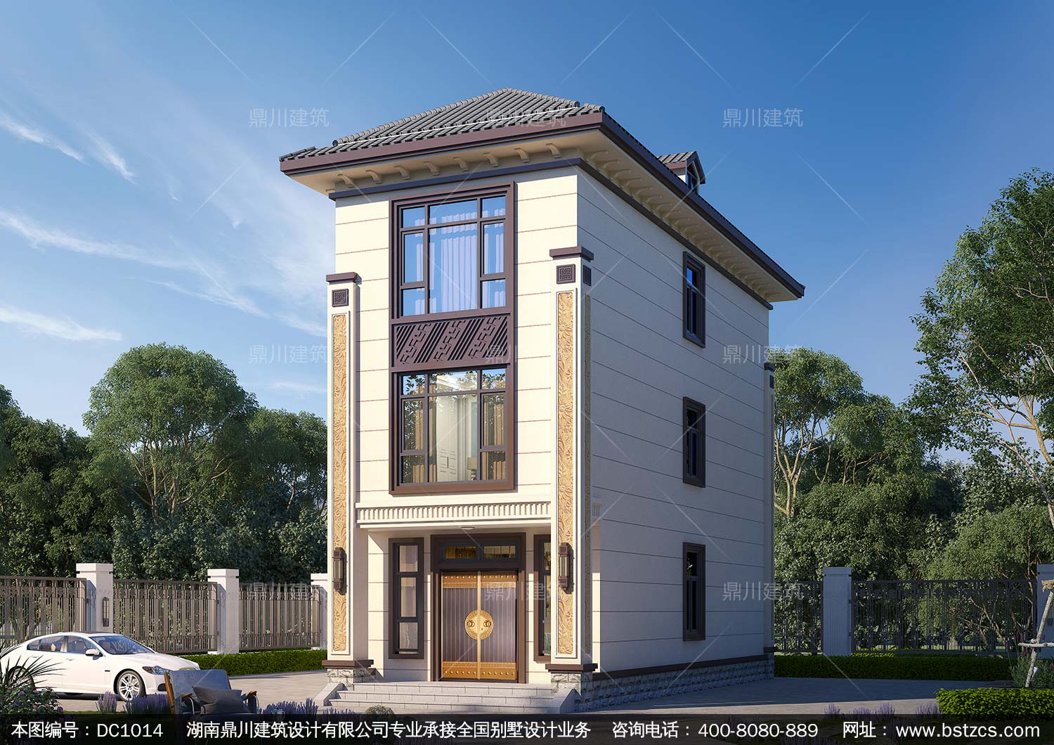 新中式三層小戶型別墅施工圖紙及效果圖_農村自建房設計,鼎川建筑
