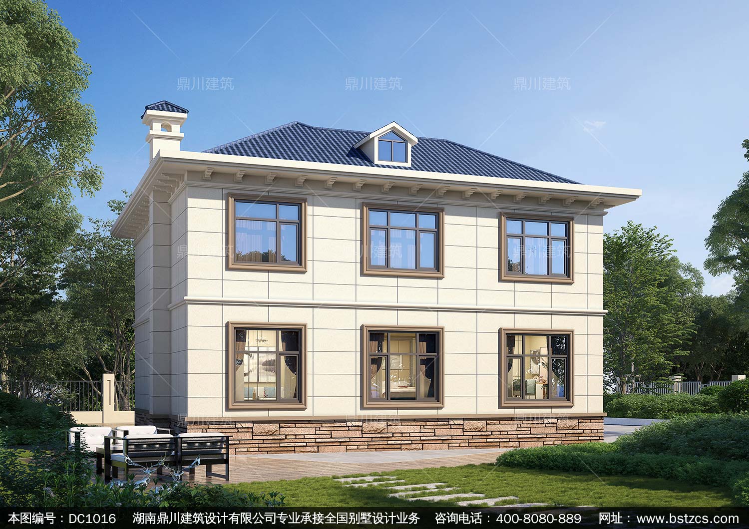 歐式二層帶露臺別墅施工圖紙及效果圖_新農(nóng)村自建別墅設(shè)計,鼎川建筑