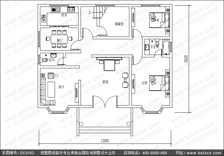 | 一 層: | 堂屋、客廳、主臥(附衛生間)、臥室、廚房、餐廳、儲藏室、衛生間 | |||