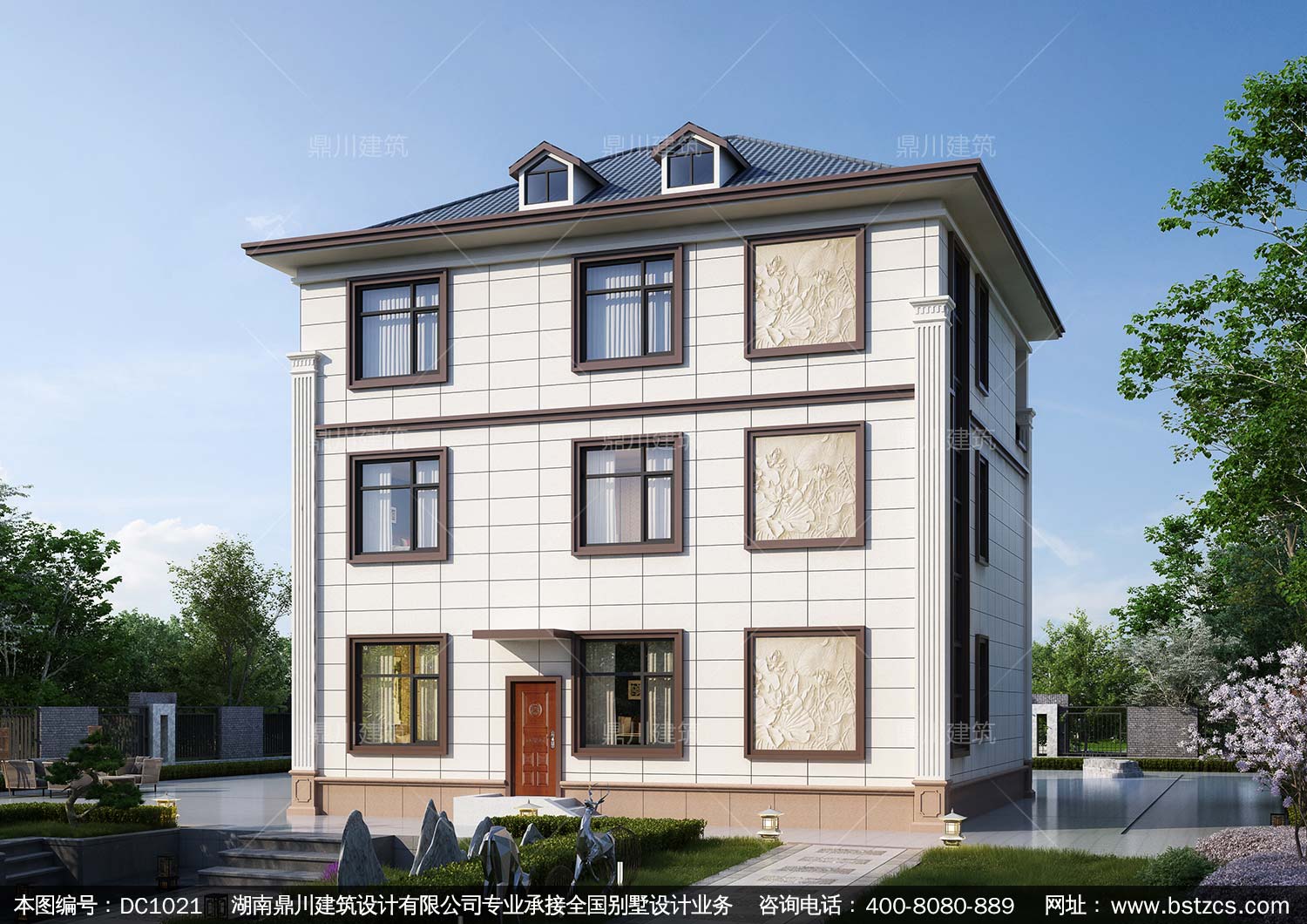 大氣三層新中式別墅設計圖紙及效果圖_農村自建別墅設計,鼎川建