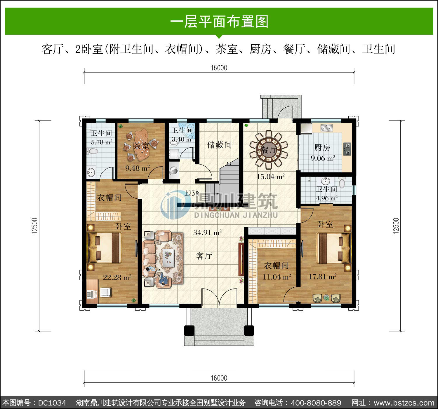 大氣新中式二層別墅施工圖紙及效果圖_農(nóng)村自建別墅設計,鼎川建筑