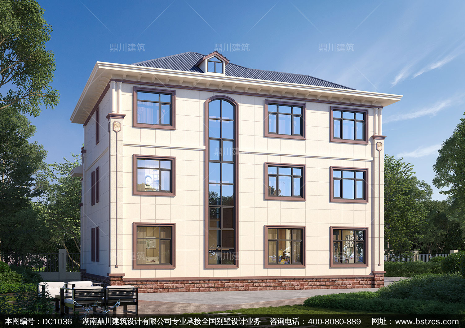 歐式三層帶車庫復式別墅施工圖紙及效果圖_農(nóng)村別墅設計,鼎川建