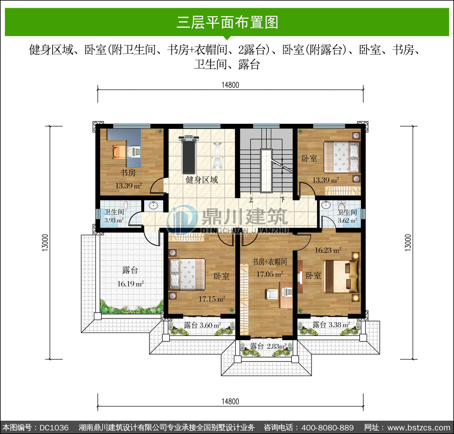 | 三 層: | 健身區(qū)域、臥室(附衛(wèi)生間、書房+衣帽間、2露臺)、臥室(附露臺)、臥室、書房、衛(wèi)生間、露臺 | |||