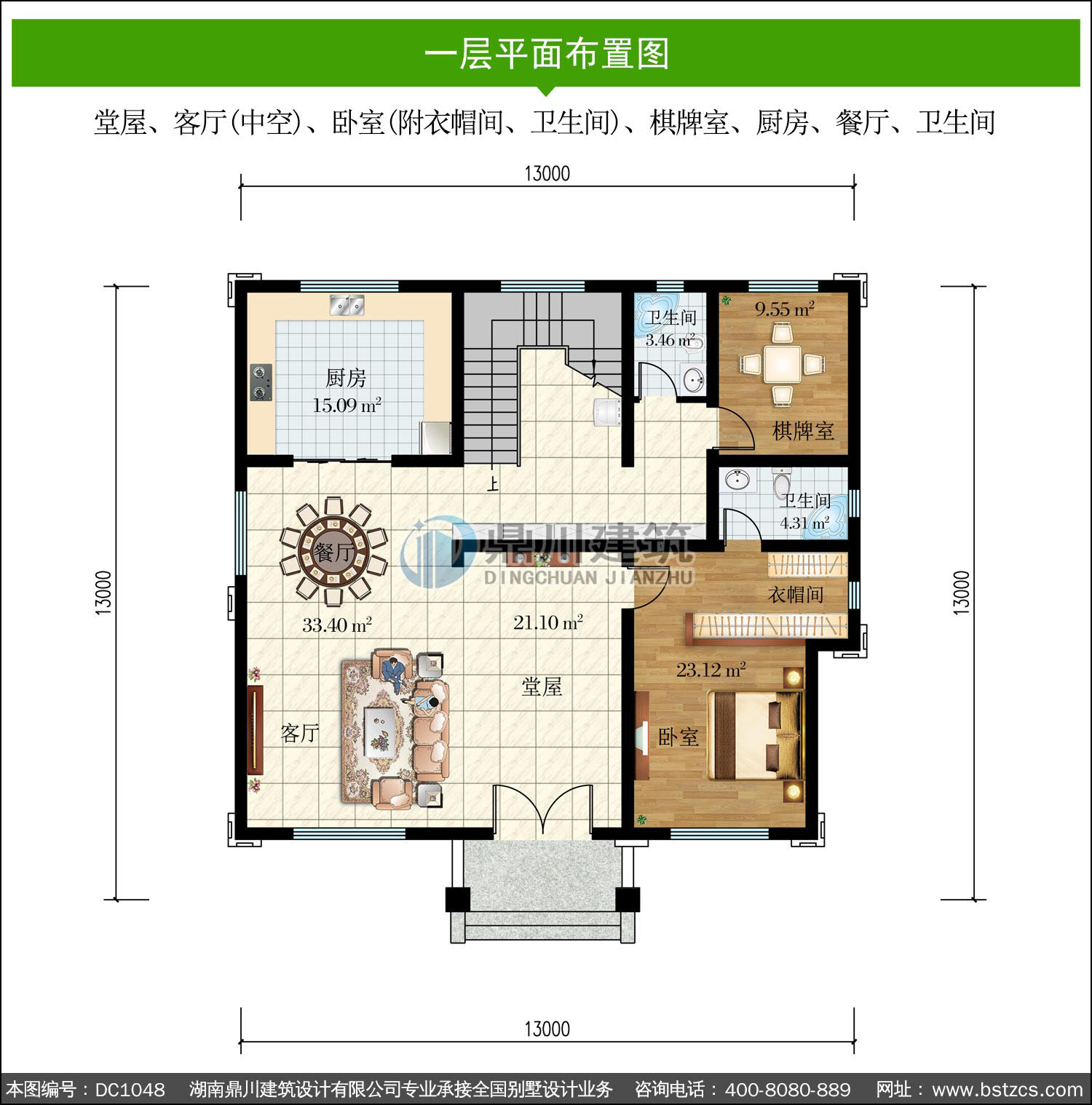 | 開(kāi)間: 13米 | 進(jìn)深: 13米 | 占地面積: 159.17平方米 | 建筑面積: 448.67平方米 |