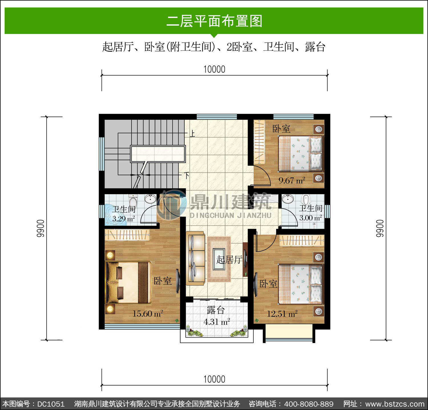| 二 層: | 起居廳、臥室(附衛(wèi)生間)、2臥室、衛(wèi)生間、露臺(tái) | |||
