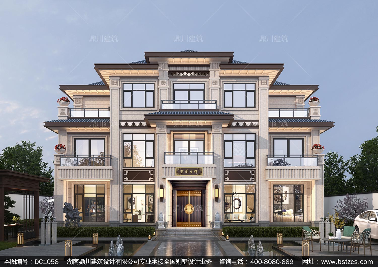 大氣新中式三層別墅設計圖紙及效果圖_農村自建別墅設計,鼎川建筑
