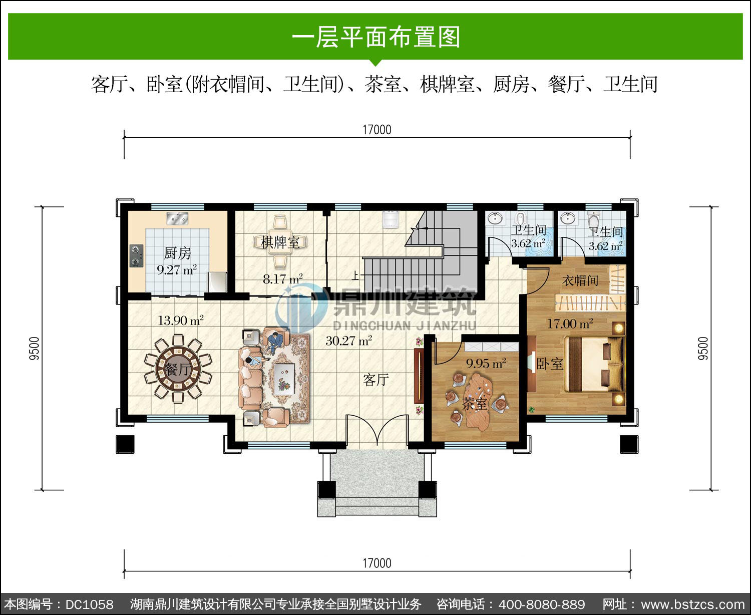 | 一 層: | 客廳、臥室(附衣帽間、衛(wèi)生間)、茶室、棋牌室、廚房、餐廳、衛(wèi)生間 | |||