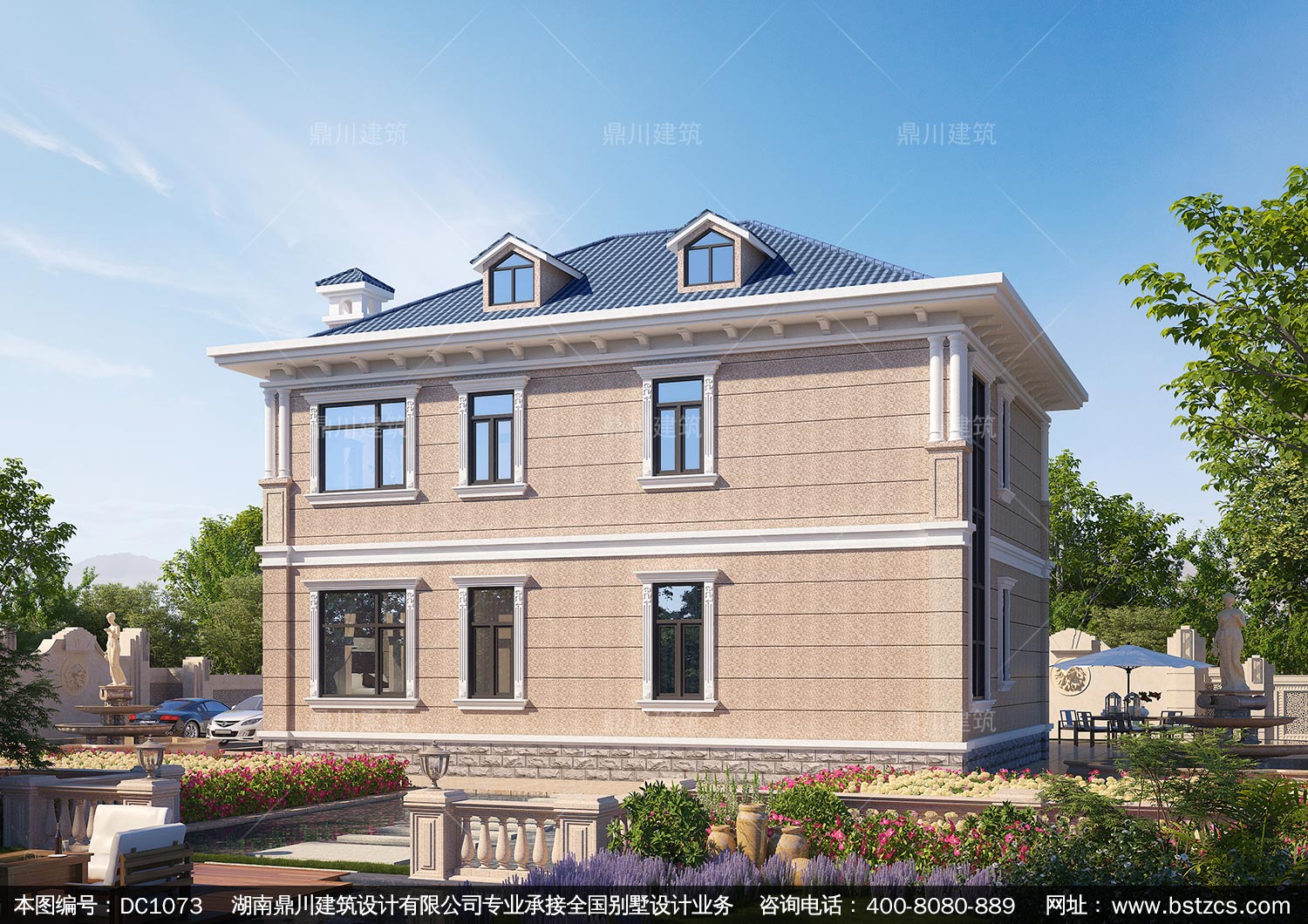 二層歐式帶露臺(tái)別墅效果圖及施工圖紙_新農(nóng)村自建別墅設(shè)計(jì),鼎川建筑