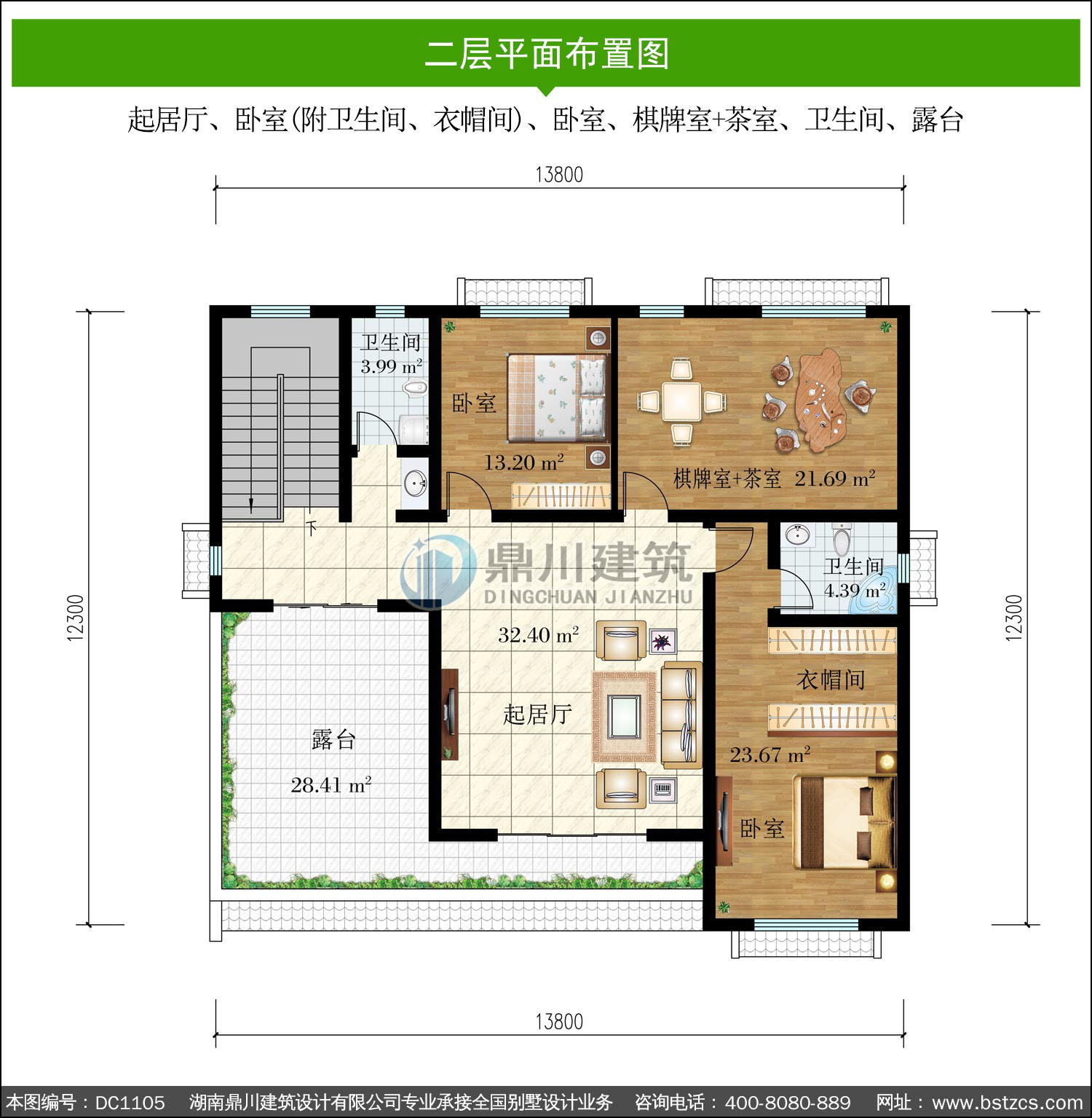 | 二 層: | 起居廳、臥室(附衛(wèi)生間、衣帽間)、臥室、棋牌室+茶室、衛(wèi)生間、露臺(tái) | |||