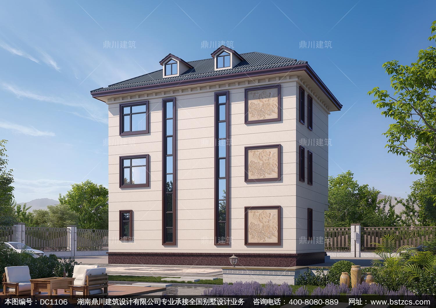 新中式三層別墅施工圖紙及效果圖_農村自建別墅設計,鼎川建筑