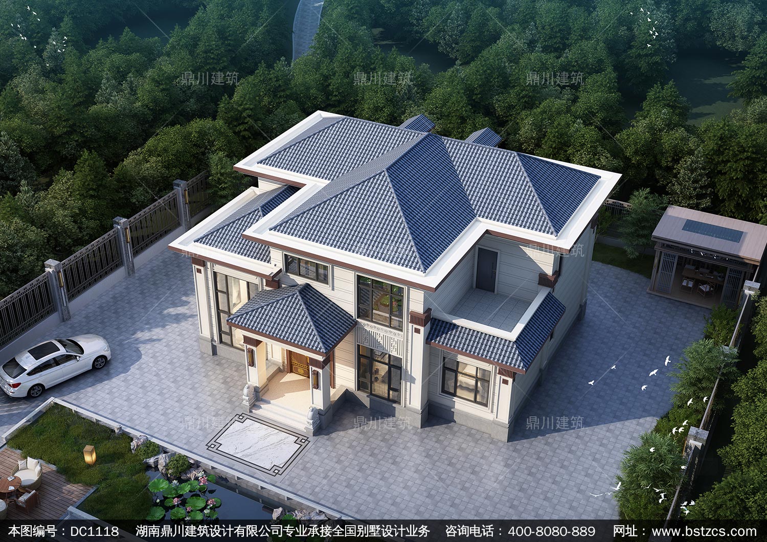 新中式二層復式別墅效果圖及施工圖紙_農村自建別墅設計,鼎川建筑