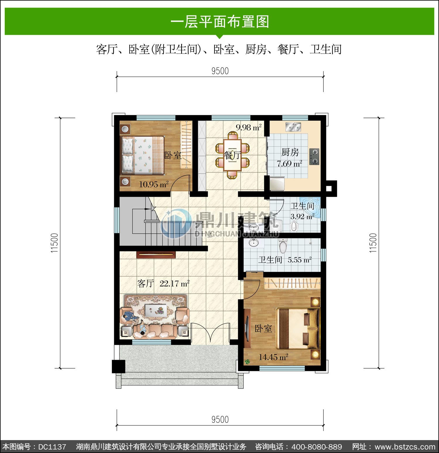 | 開間: 9.5米 | 進深: 11.5米 | 占地面積: 114.83平方米 | 建筑面積: 251.56平方米 |