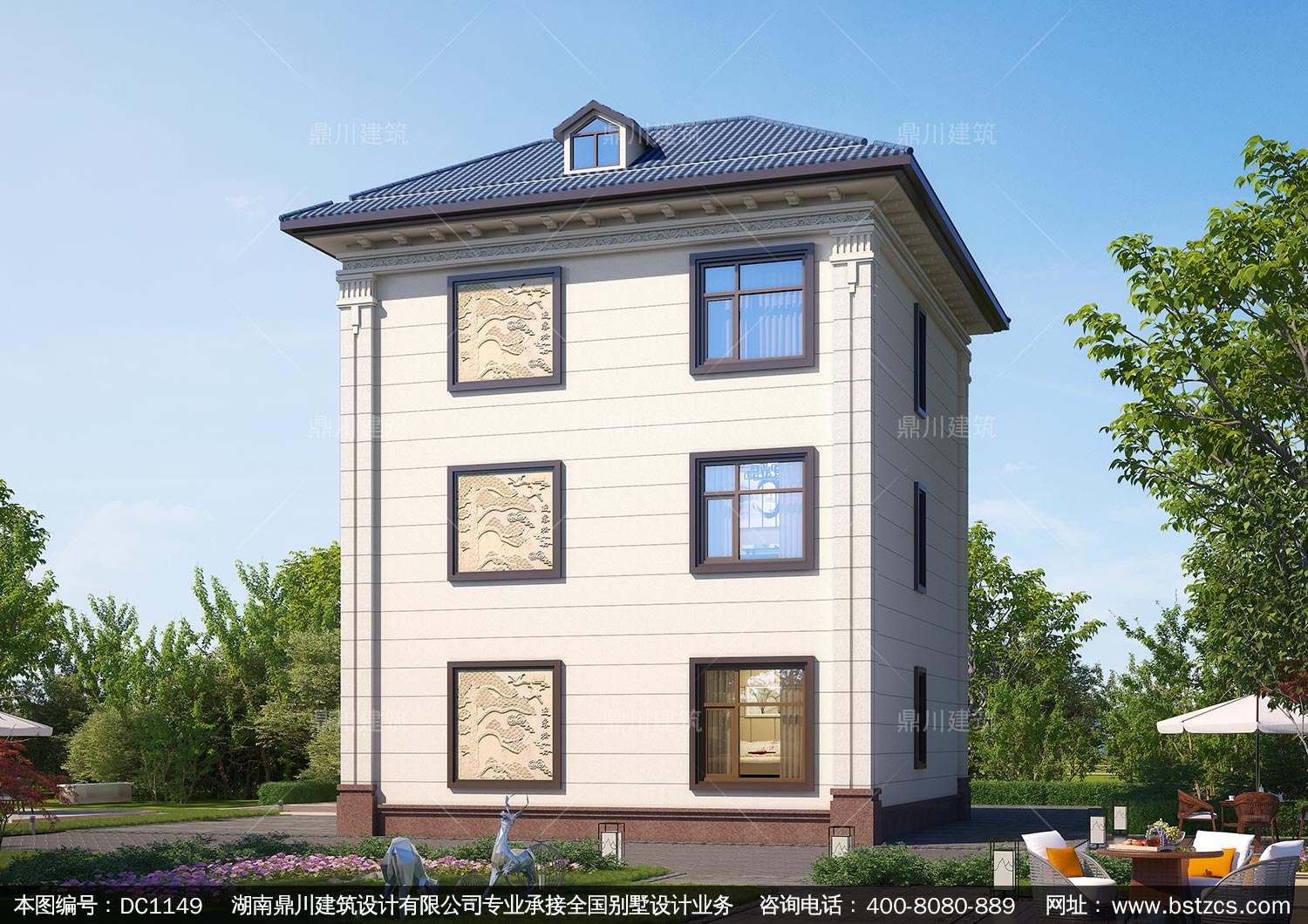 新中式三層小戶型別墅施工圖紙及效果圖_農村自建別墅設計,鼎川建筑
