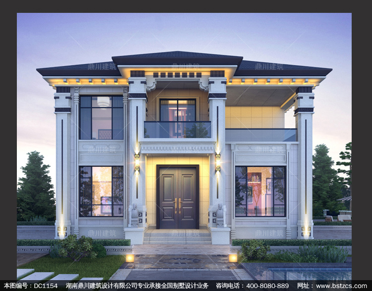 新中式二層別墅施工圖紙及外觀效果圖_農村自建別墅設計,鼎川建