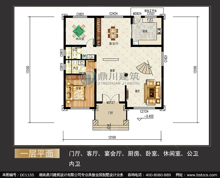 | 一 層: | 門廳、客廳、宴會廳、廚房、臥室、休閑室、公衛、內衛 | |||