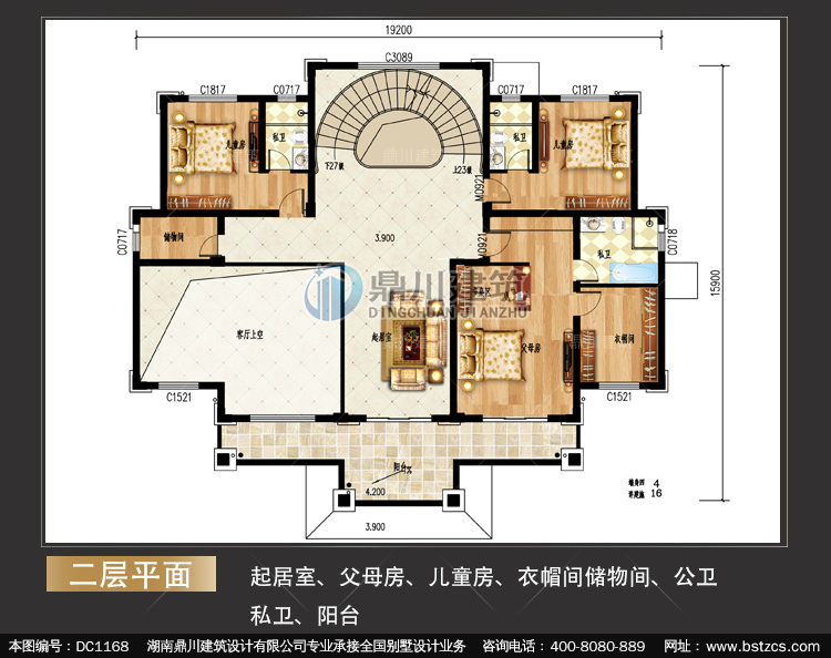 新中式三層帶旋轉樓梯別墅圖紙及效果圖_新農村自建別墅設計,鼎川建筑