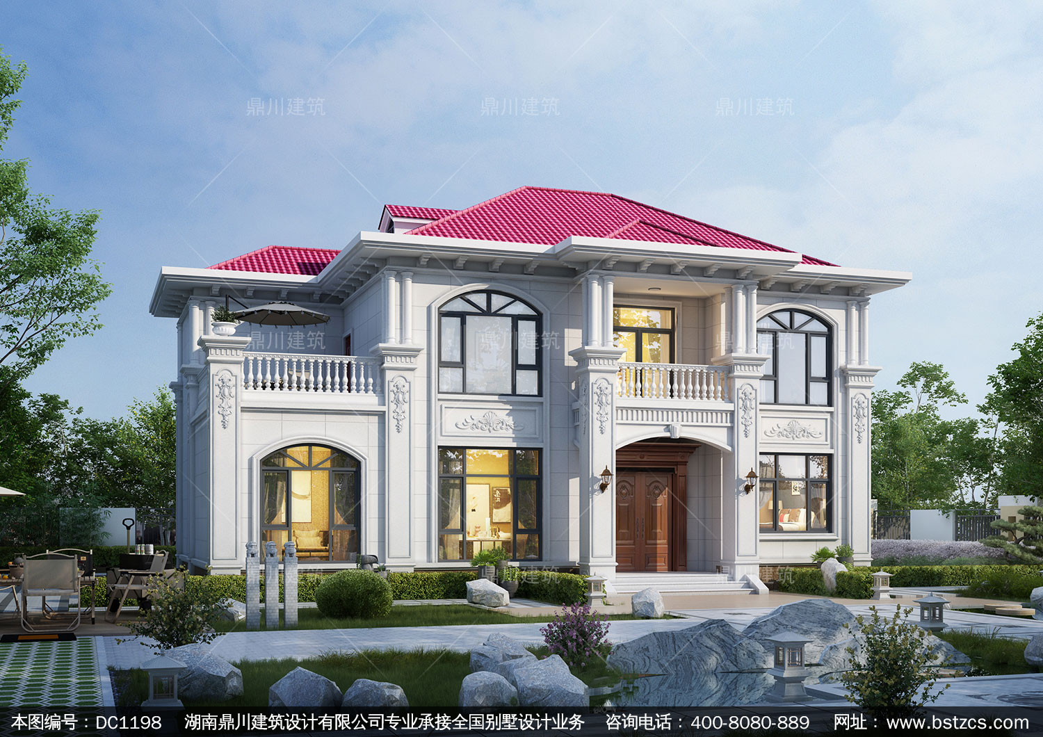 歐式二層帶露臺別墅設計圖紙及效果圖_新農村自建房設計,鼎川建