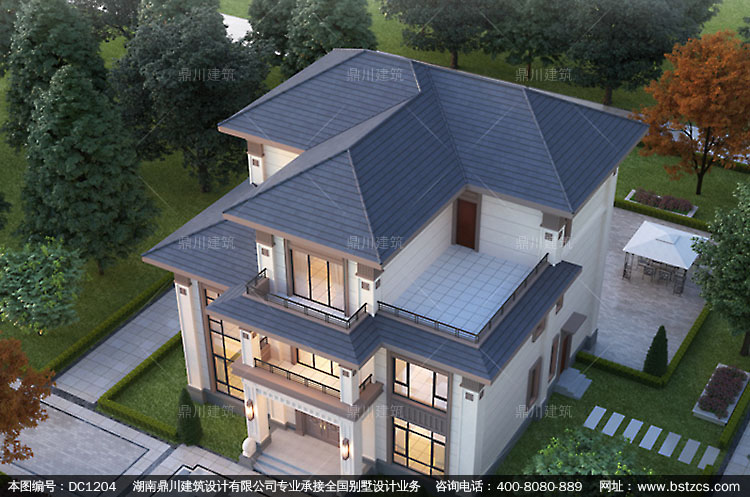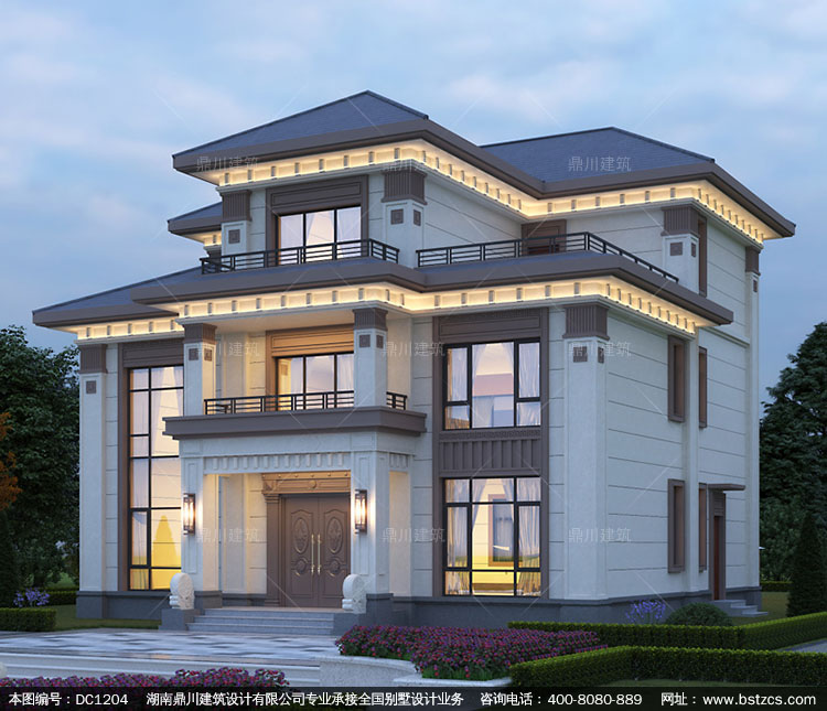 大氣三層新中式別墅設計圖紙及效果圖_農(nóng)村自建別墅設計,鼎川建