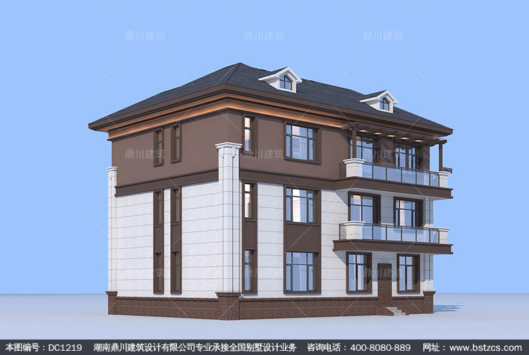 大氣新中式三層復式別墅圖紙及效果圖_農村自建別墅設計,鼎川建