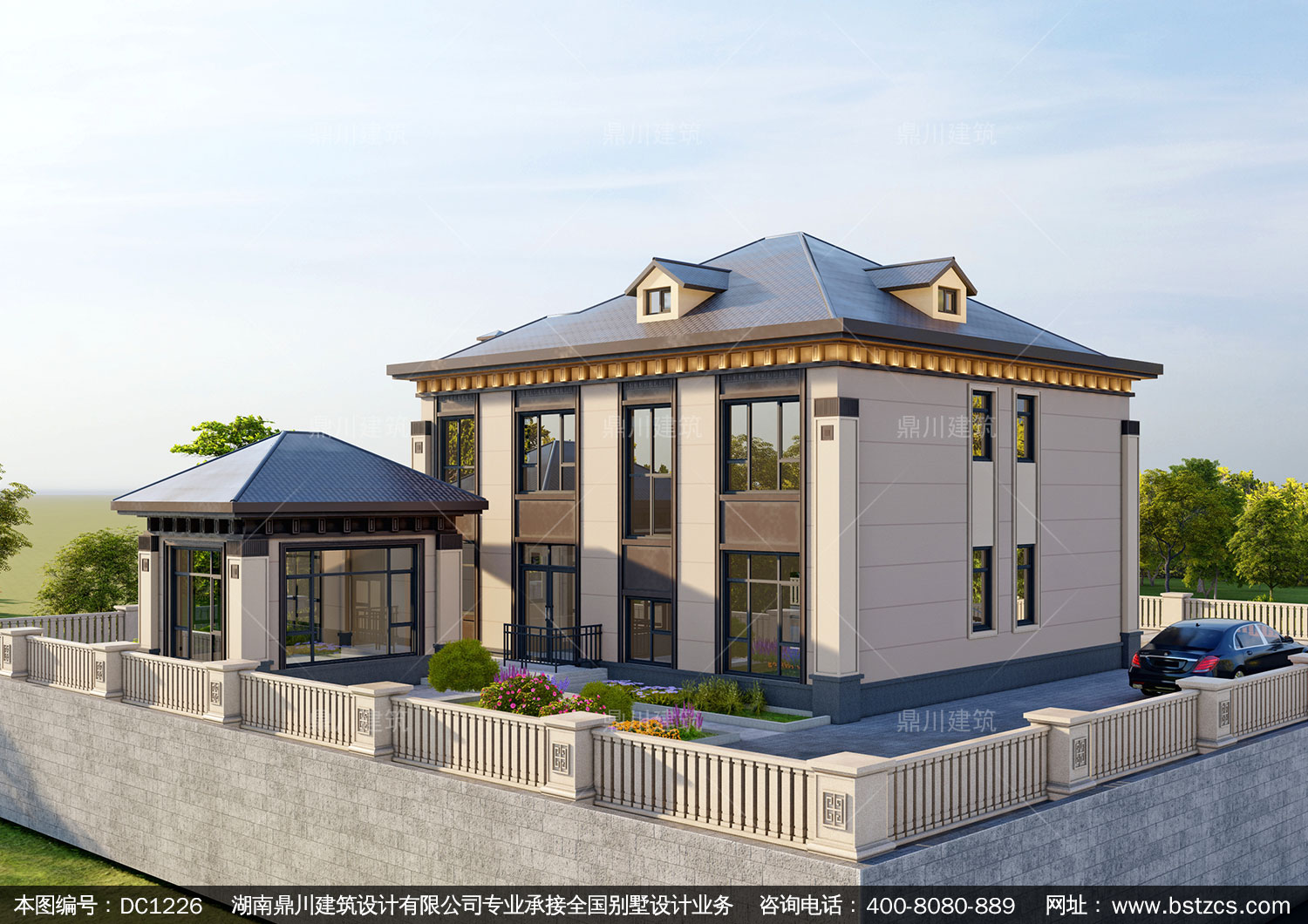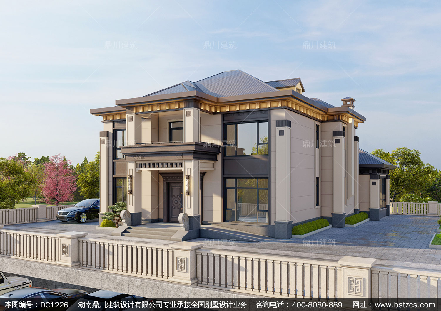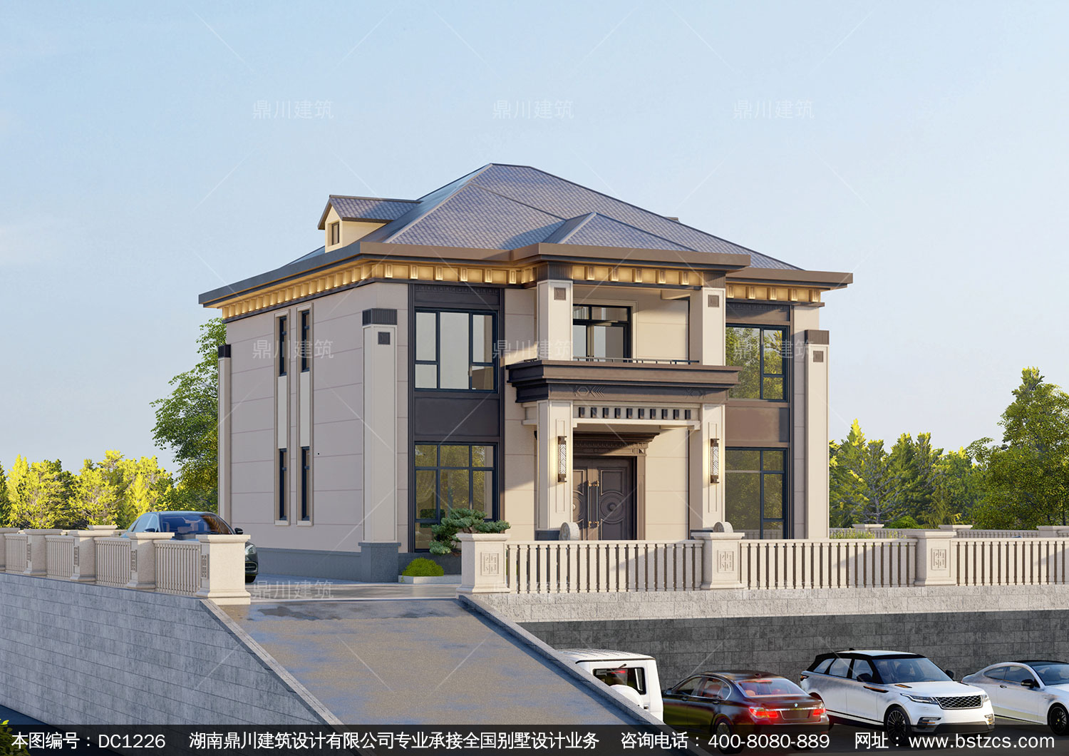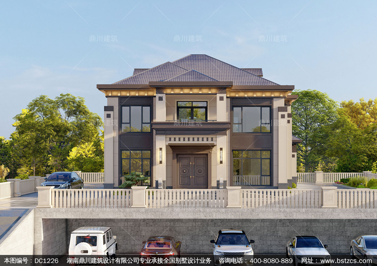 新中式二層別墅圖紙及效果圖_農村自建別墅設計,鼎川建筑