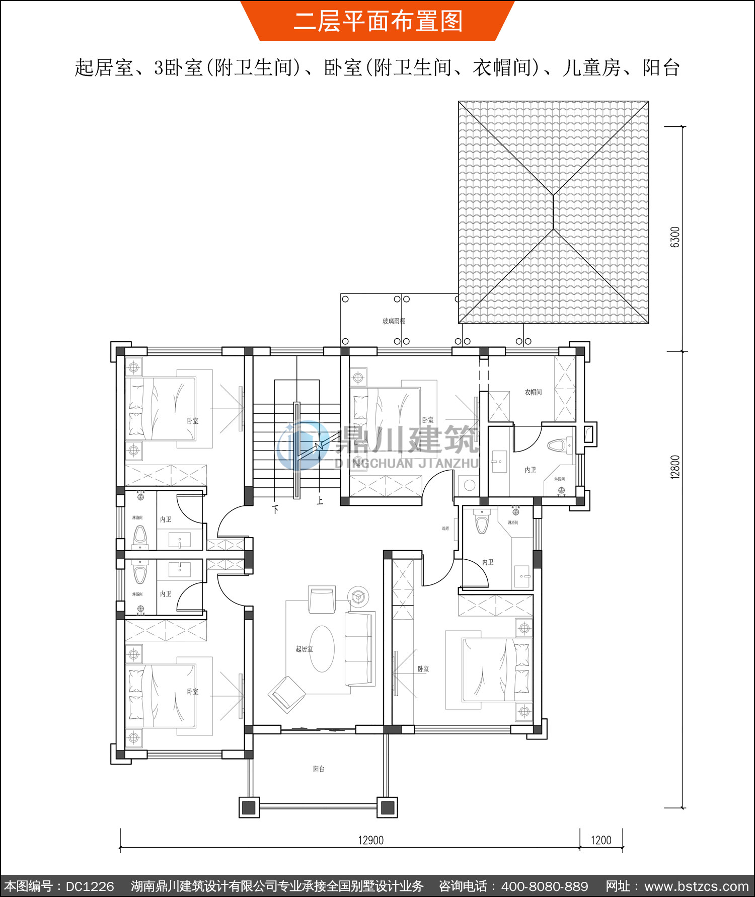 | 二 層: | 起居室、3臥室(附衛生間)、臥室(附衛生間、衣帽間)、兒童房、陽臺 | |||