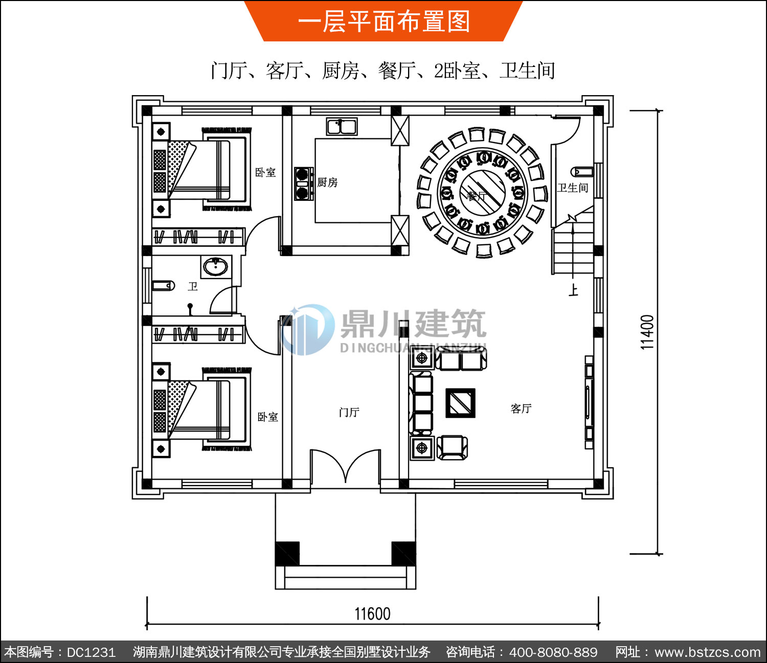 | 一 層: | 門廳、客廳、廚房、餐廳、2臥室、衛生間 | |||