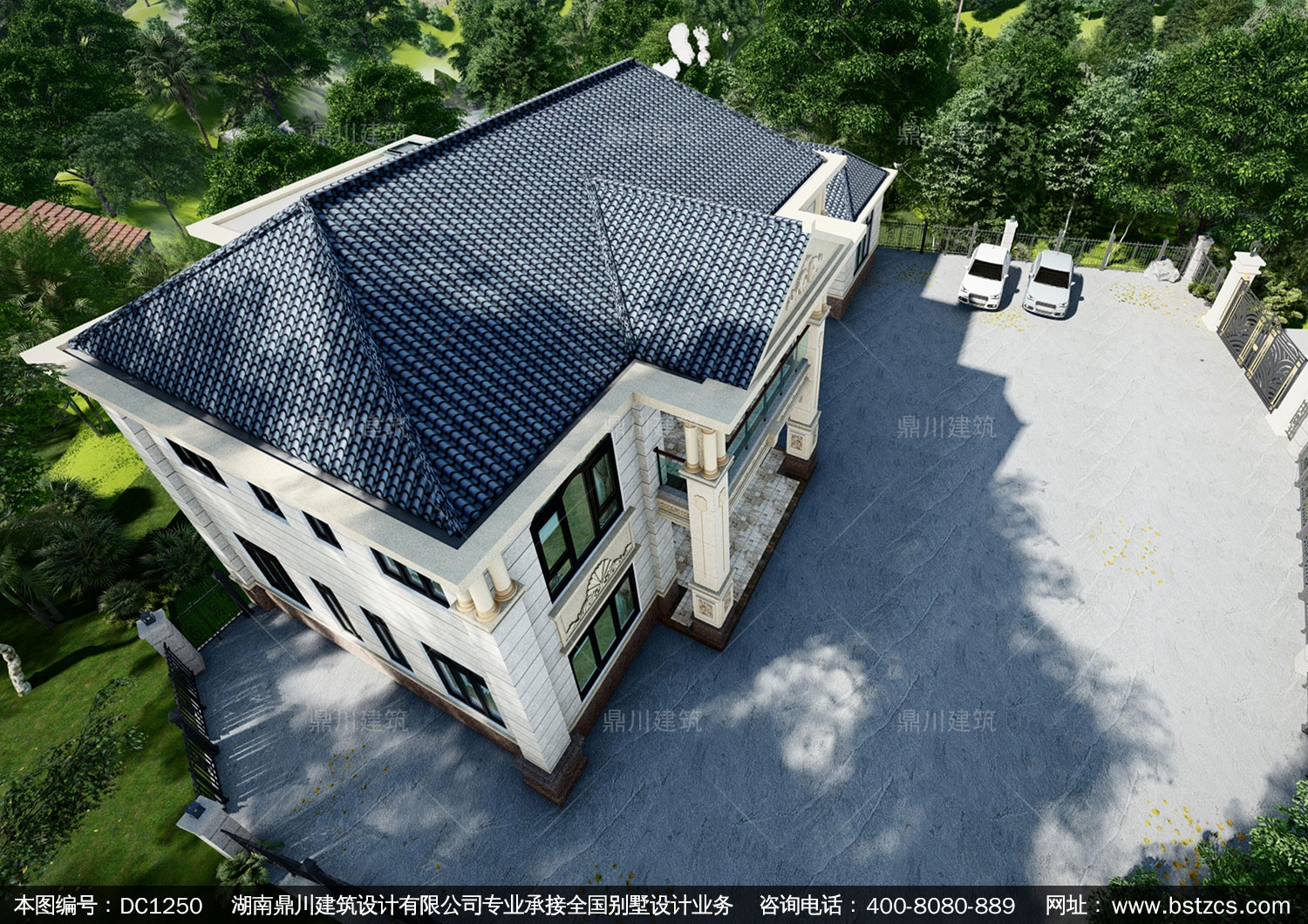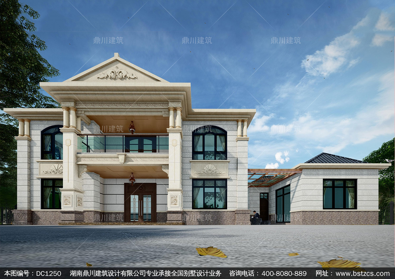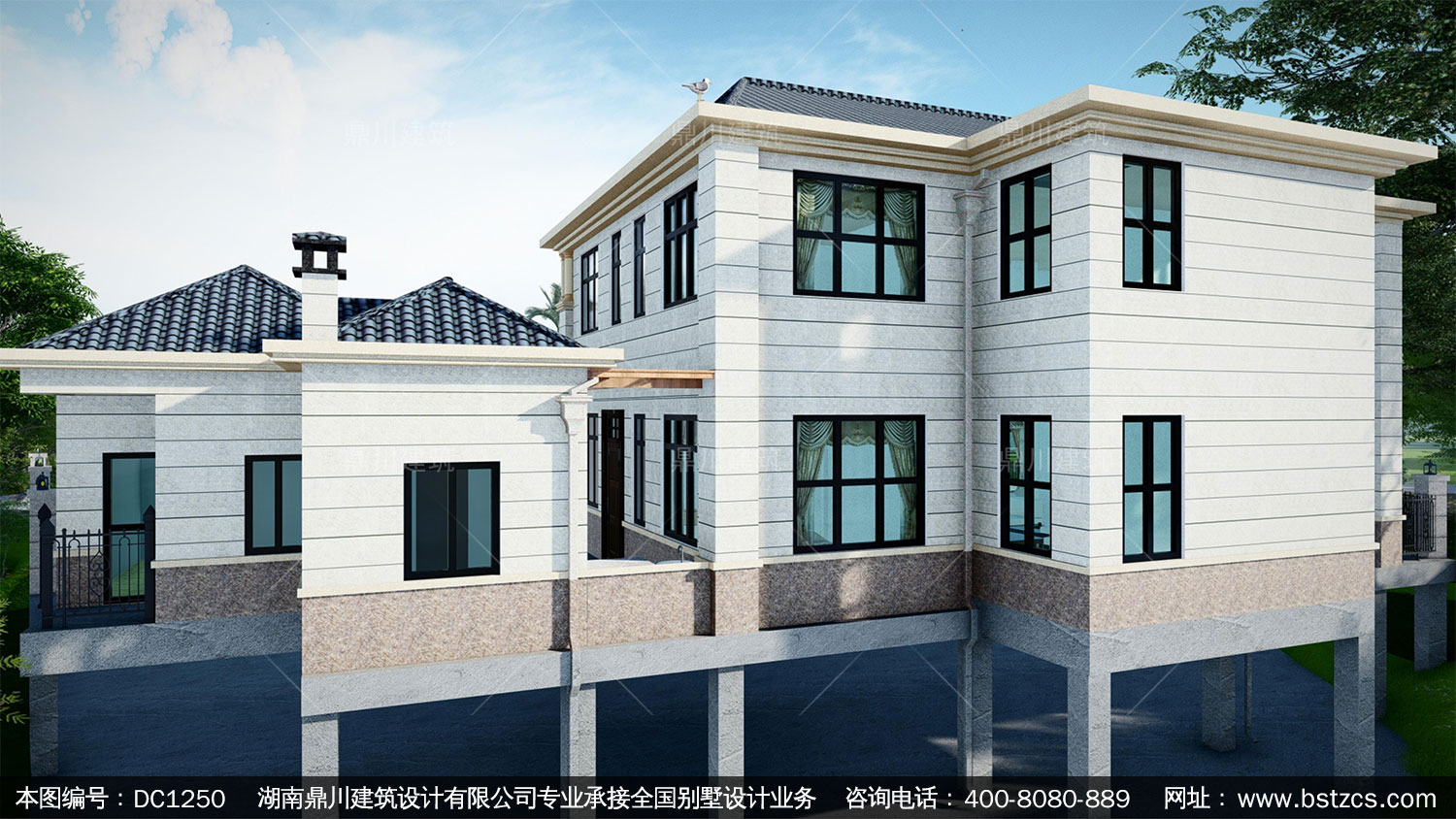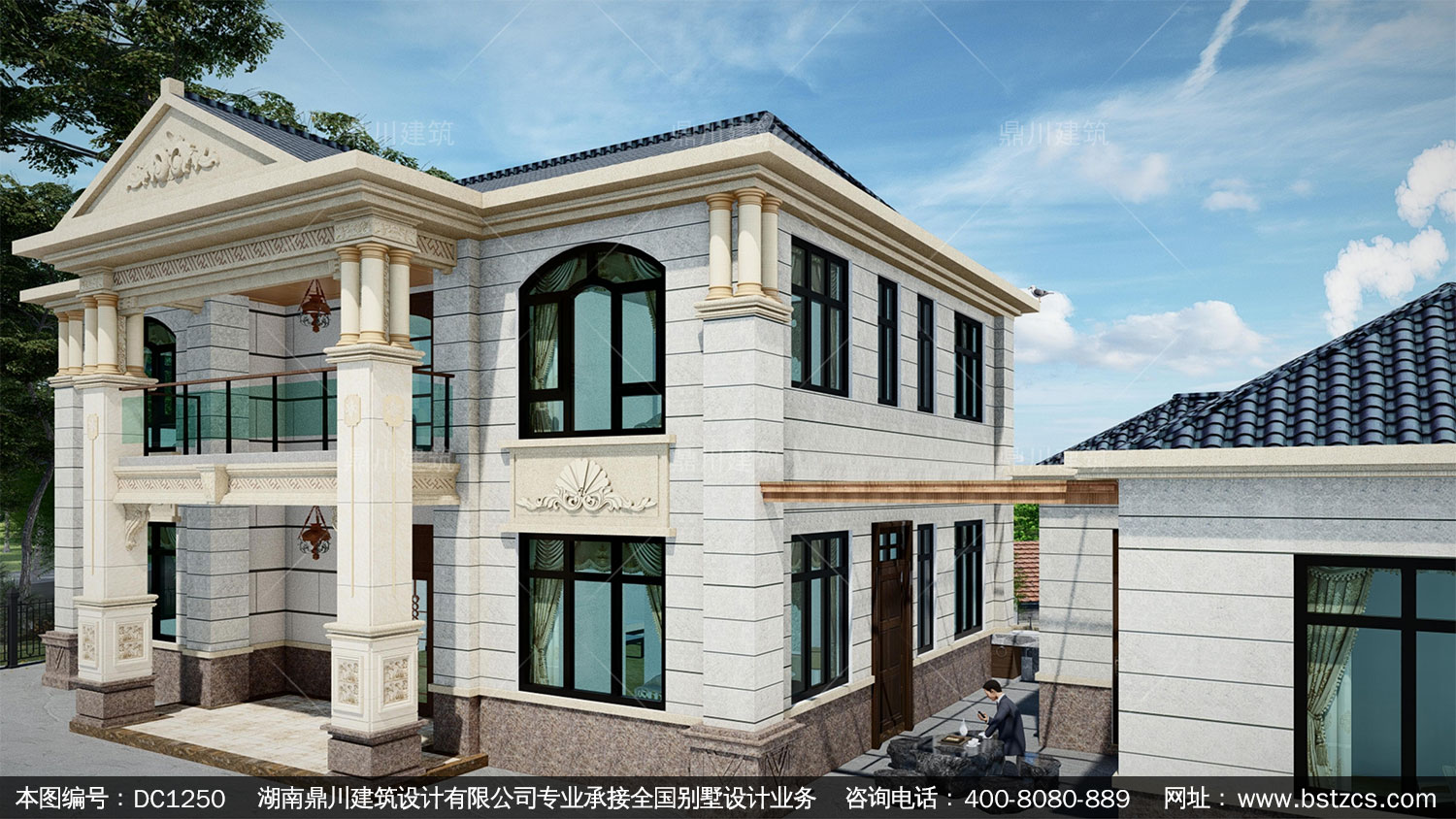 歐式二層帶偏房別墅施工圖紙及效果圖_農(nóng)村自建別墅設(shè)計(jì),鼎川建筑