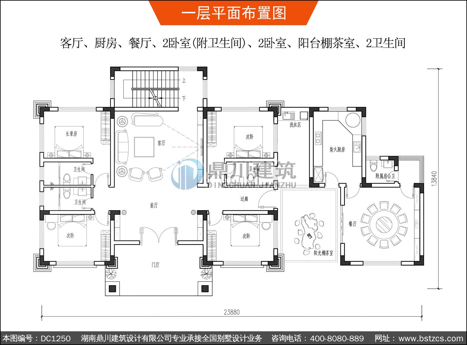 | 一 層: | 客廳、廚房、餐廳、2臥室(附衛(wèi)生間)、2臥室、陽(yáng)臺(tái)棚茶室、2衛(wèi)生間 | |||