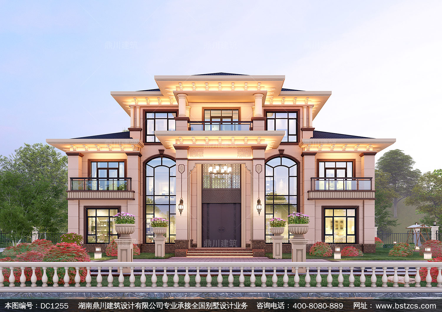 新中式三層復式別墅圖紙及外觀效果圖_農村自建別墅設計,鼎川建
