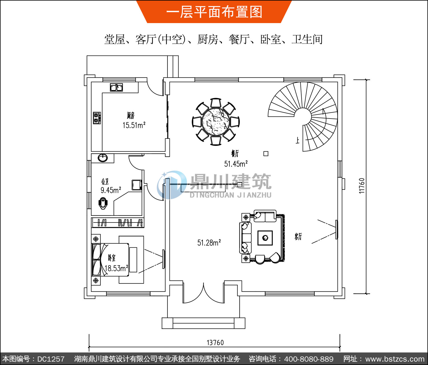 | 一 層: | 堂屋、客廳(中空)、廚房、餐廳、臥室、衛(wèi)生間 | |||