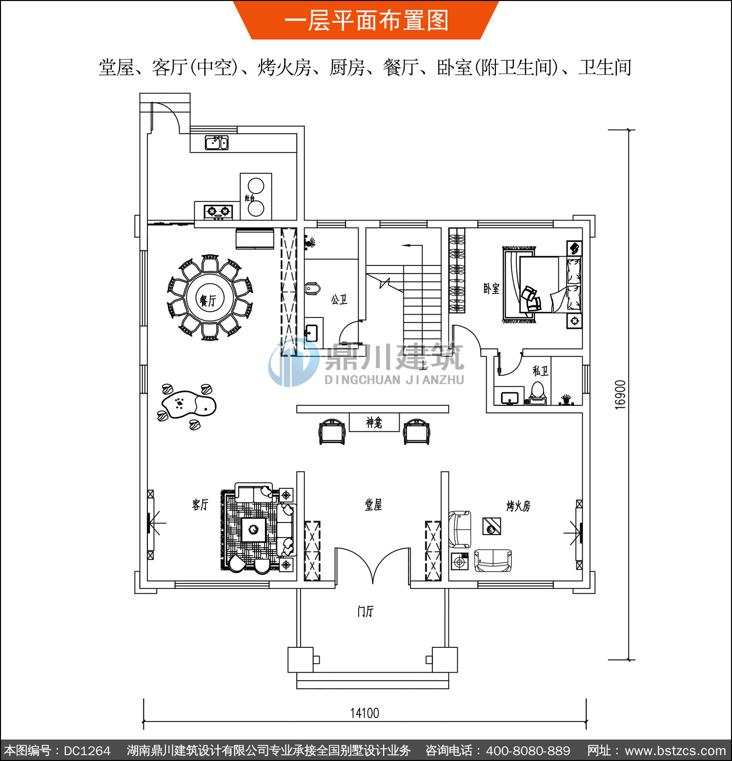 | 一 層: | 堂屋、客廳(中空)、烤火房、廚房、餐廳、臥室(附衛生間)、衛生間 | |||