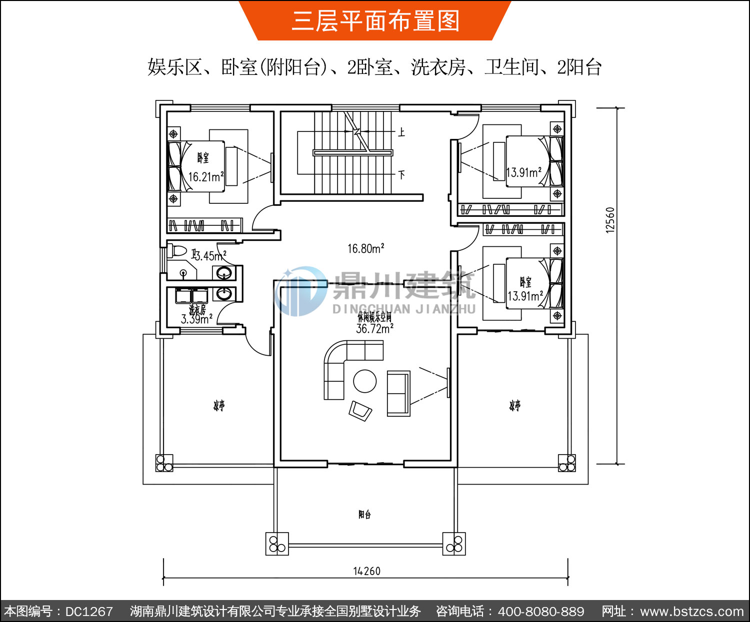 | 三 層: | 娛樂區、臥室(附陽臺)、2臥室、洗衣房、衛生間、2陽臺 | |||