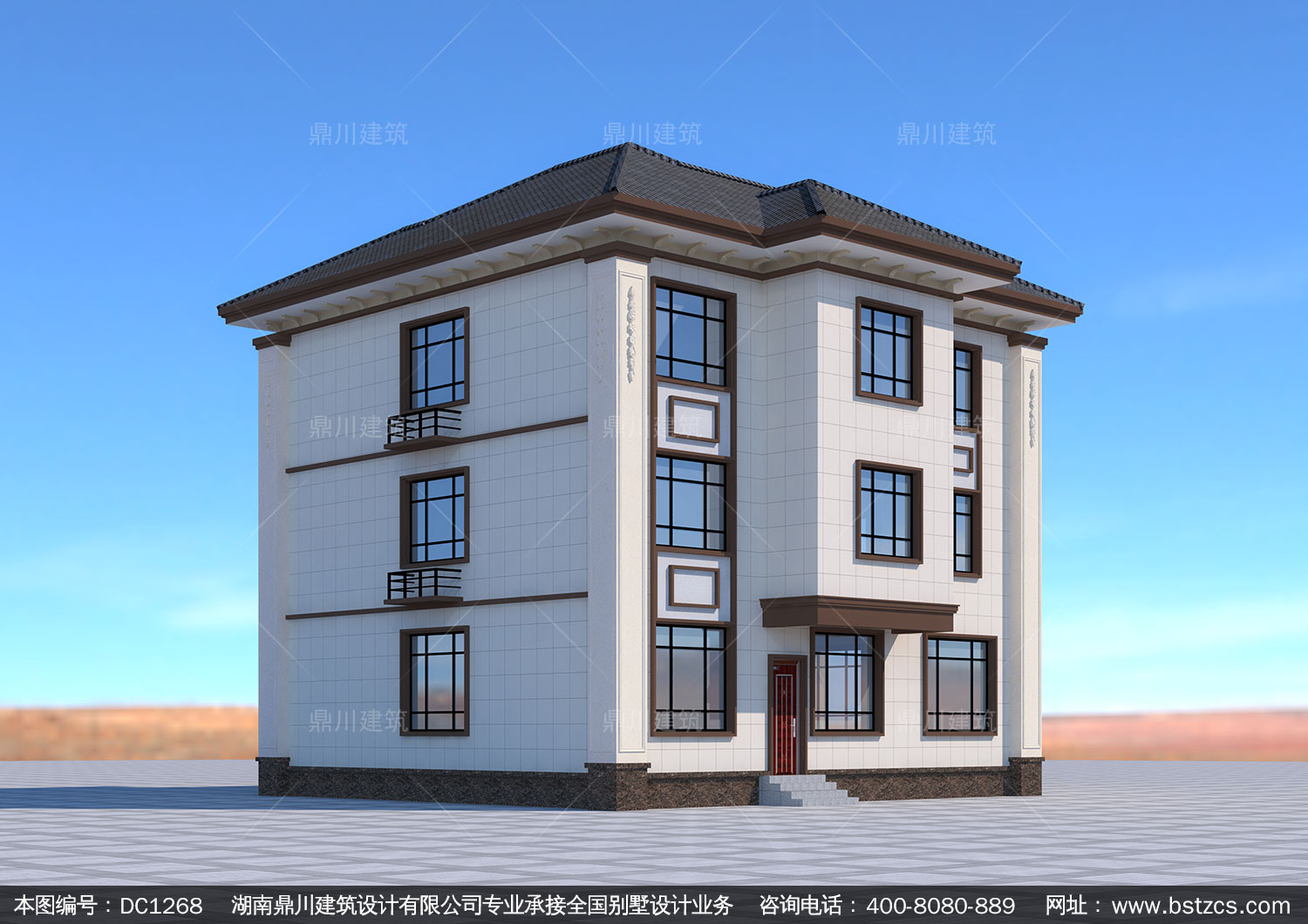 新中式三層別墅施工圖紙及效果圖_農(nóng)村自建別墅設(shè)計,鼎川建筑