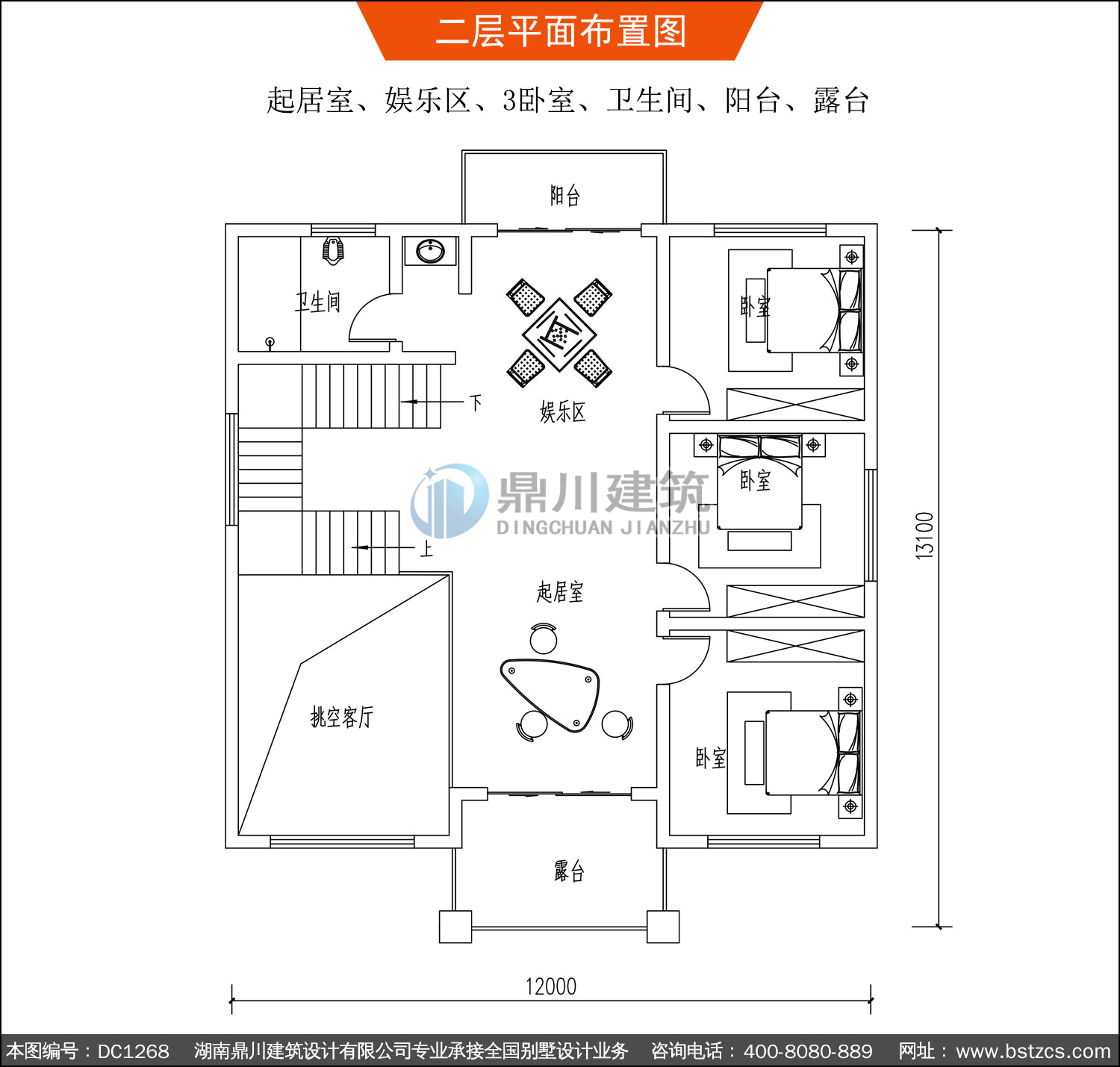 | 二 層: | 起居室、娛樂區(qū)、3臥室、衛(wèi)生間、陽臺、露臺 | |||