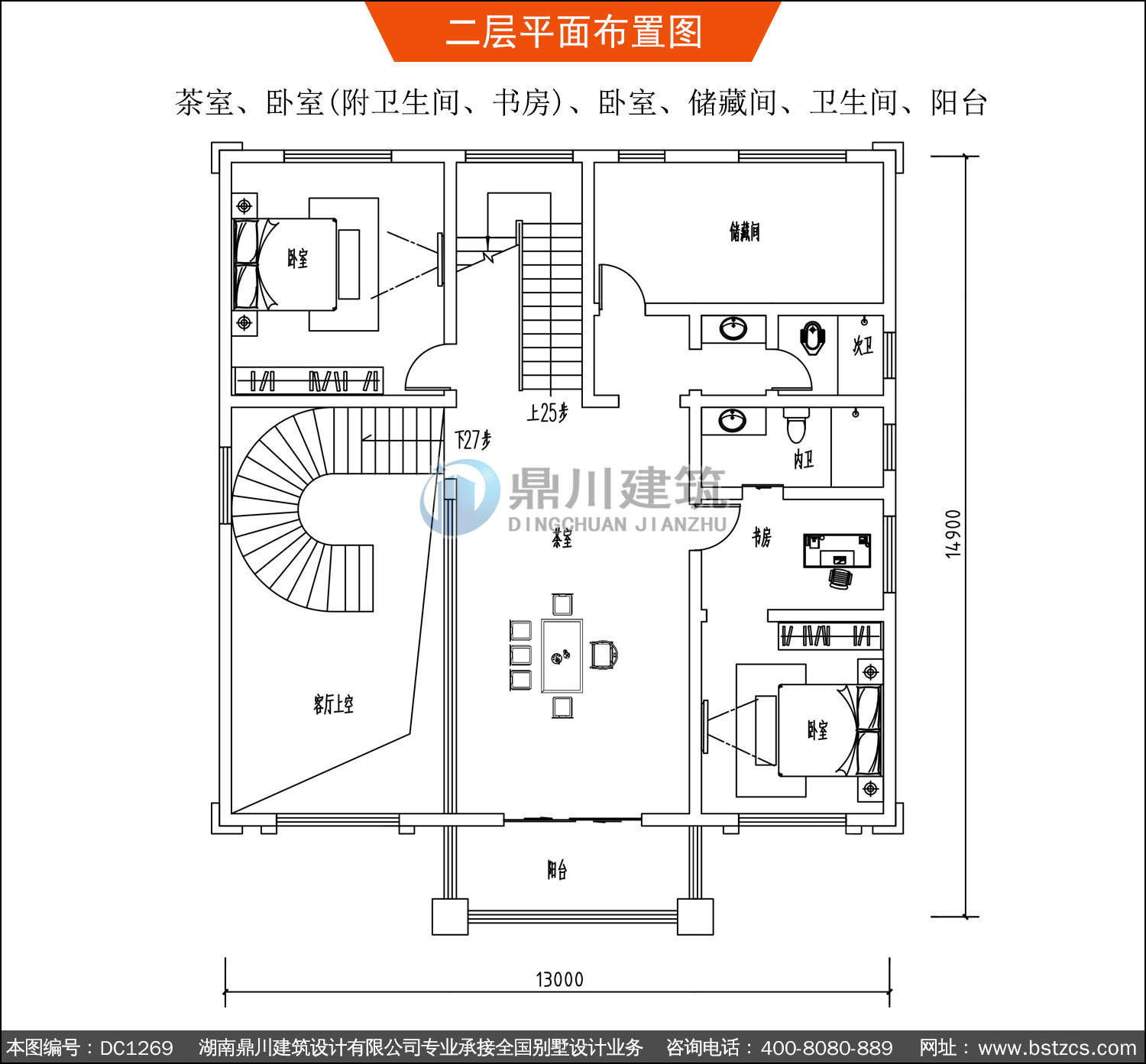 | 二 層: | 茶室、臥室(附衛生間、書房)、臥室、儲藏間、衛生間、陽臺 | |||