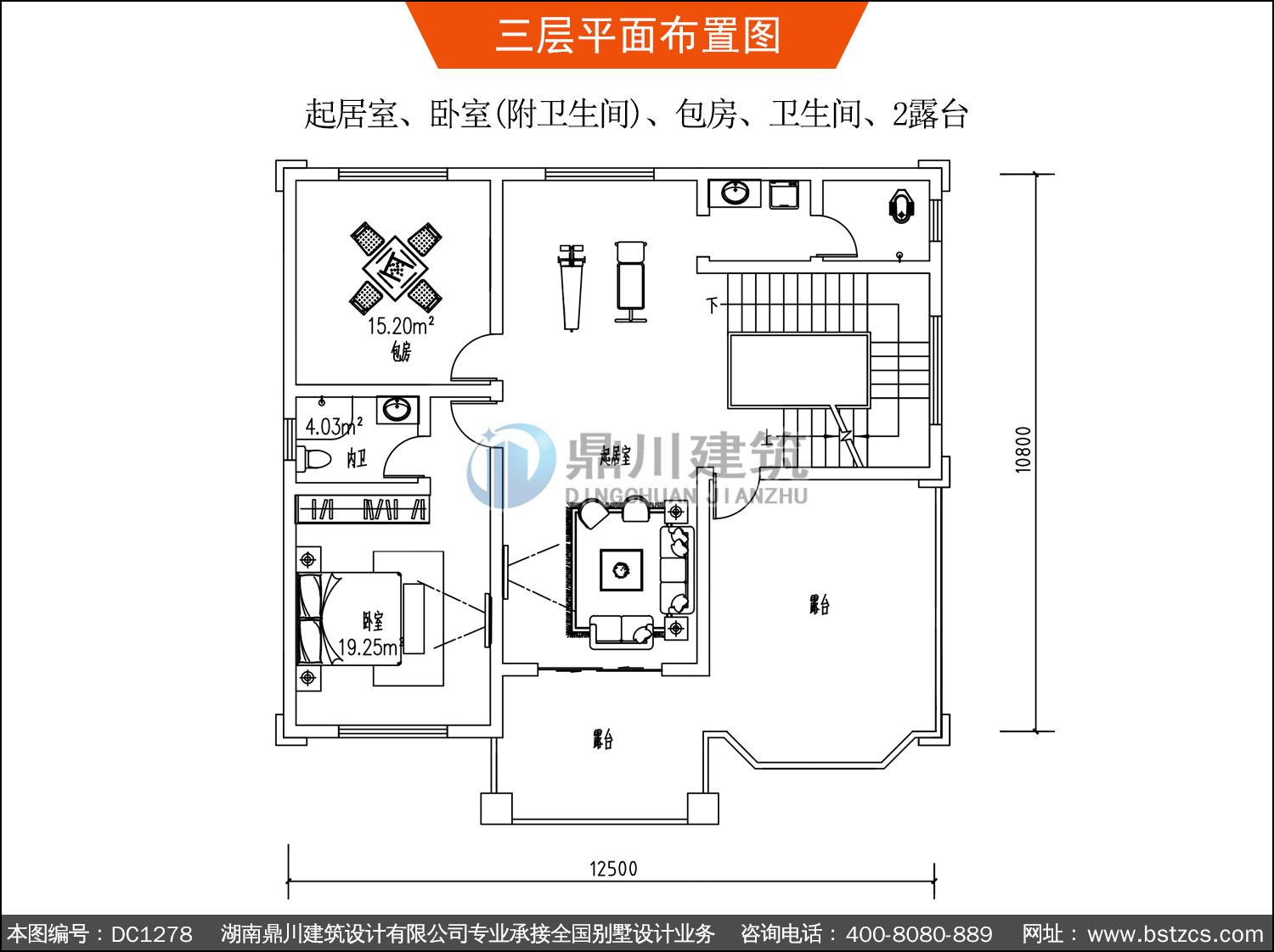 復式三層帶露臺別墅圖紙及外觀效果圖_新農村自建房設計,鼎川建