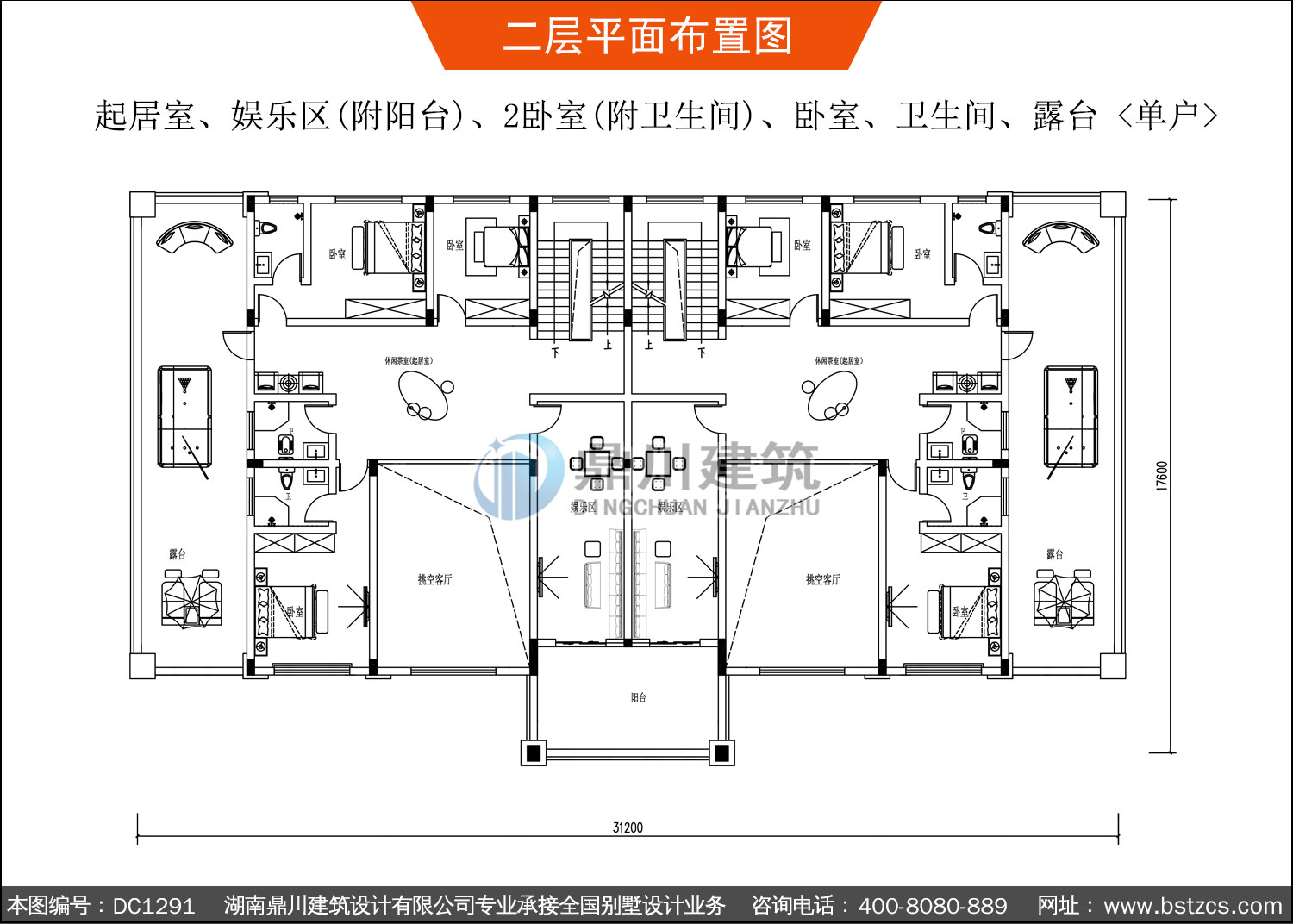 | 二 層: | 起居室、娛樂(lè)區(qū)(附陽(yáng)臺(tái))、臥室(附衛(wèi)生間)、臥室、衛(wèi)生間、露臺(tái) <單戶> | |||
